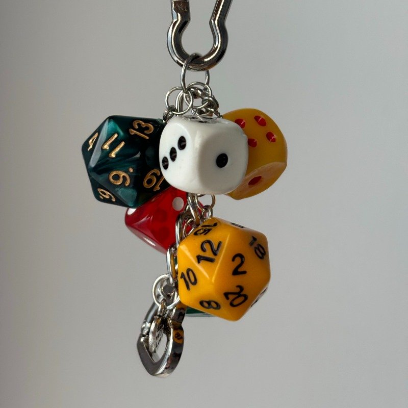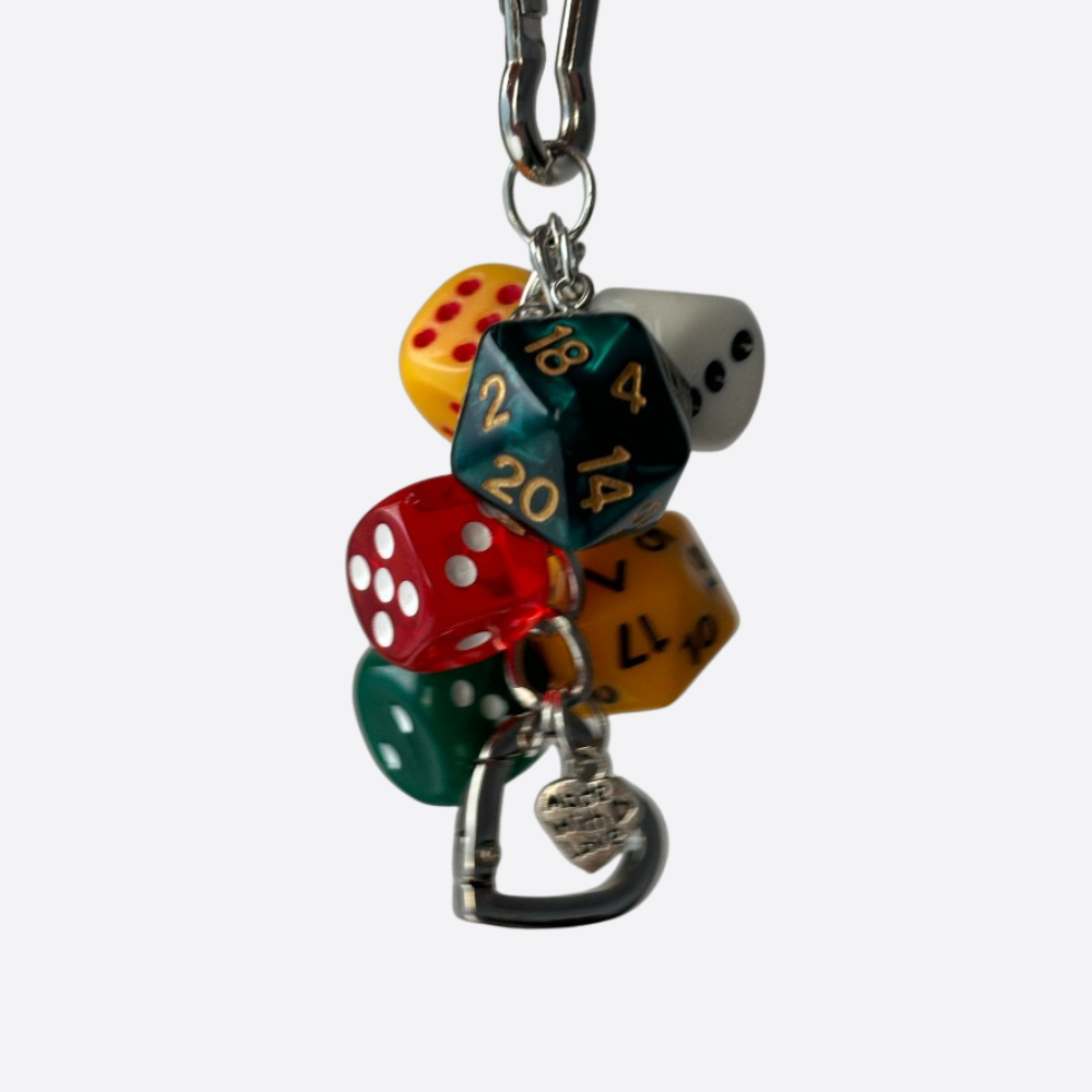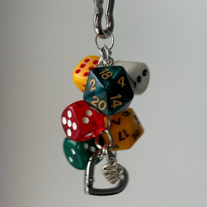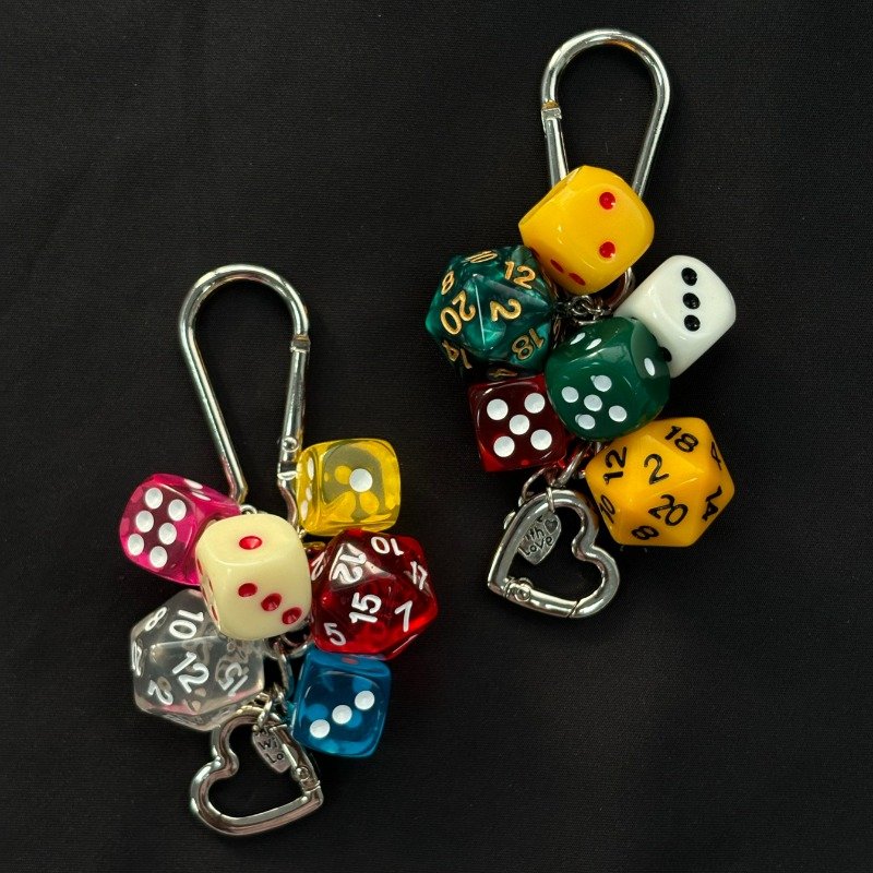 Dice Keychain Charm Set – Colorful 6-Sided & 20-Sided Dice with Heart Pendant, Perfect for Gaming Fans, Dice Collectors, and Gift Packagin