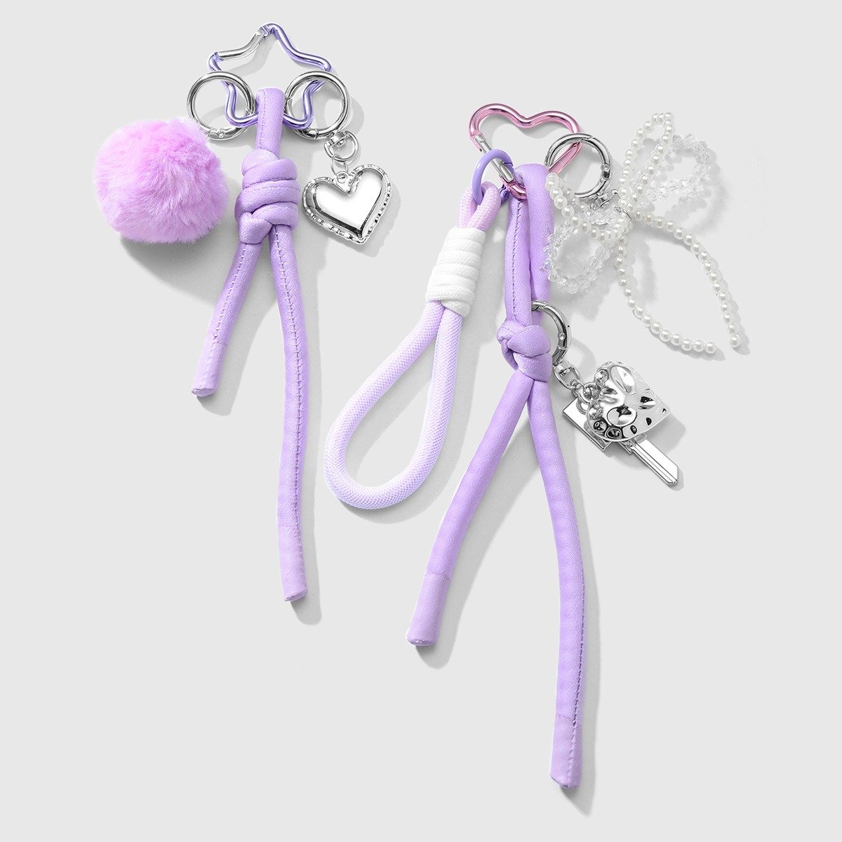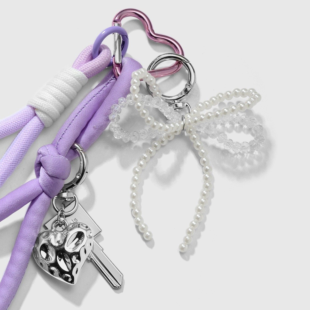 Luxury Purple Pom-Pom Keychain – CCB Heart Charm with Faux Pearl Beads & Bow, Elegant DIY Accessory quantity