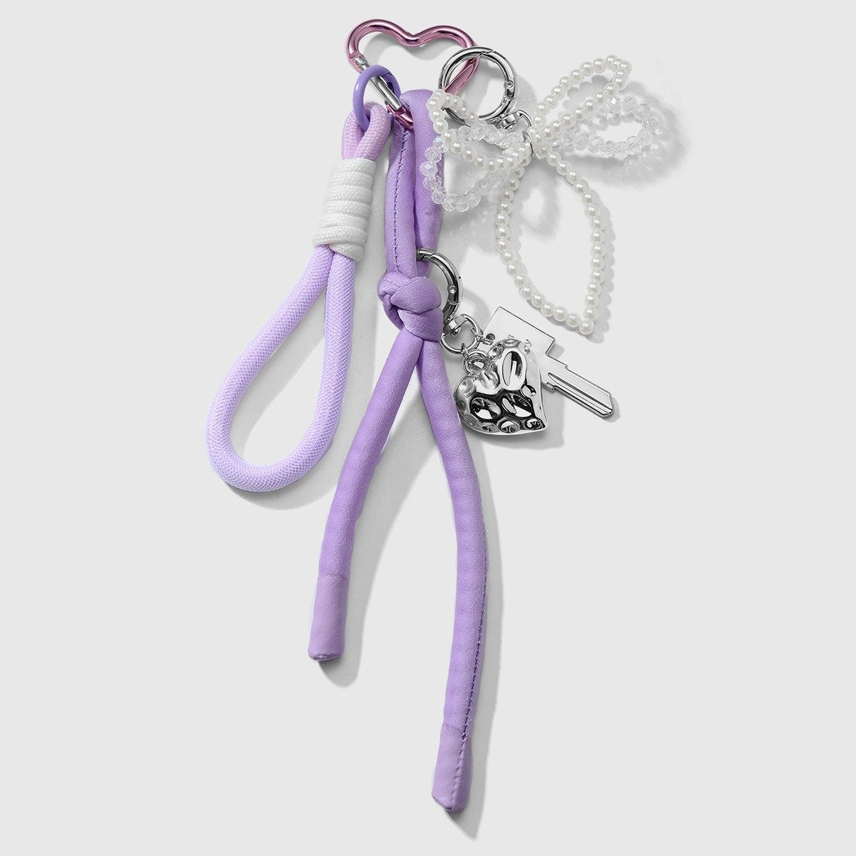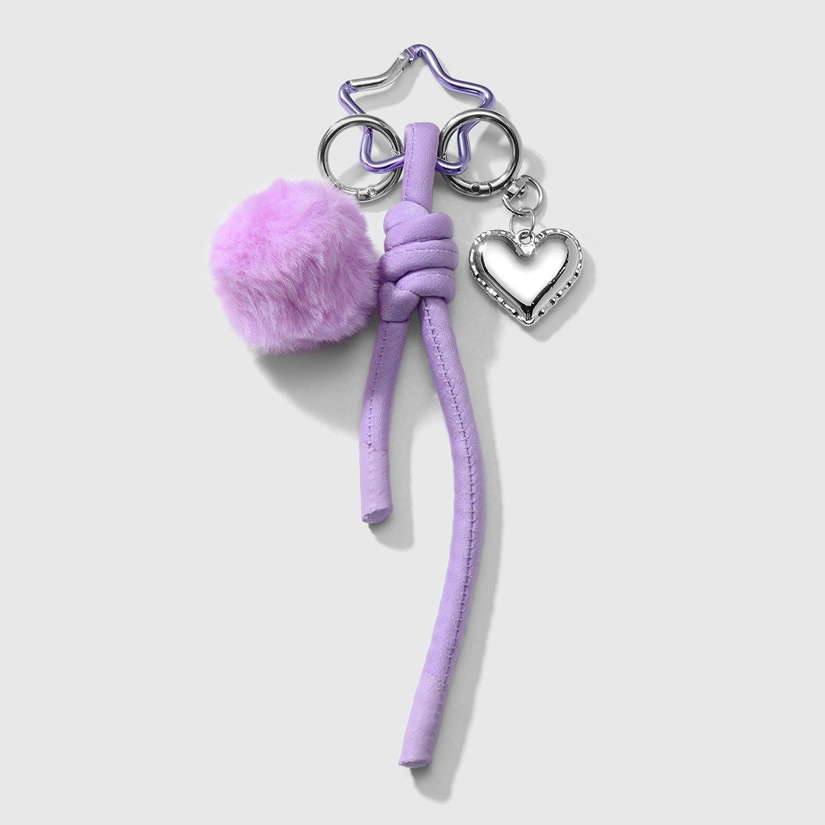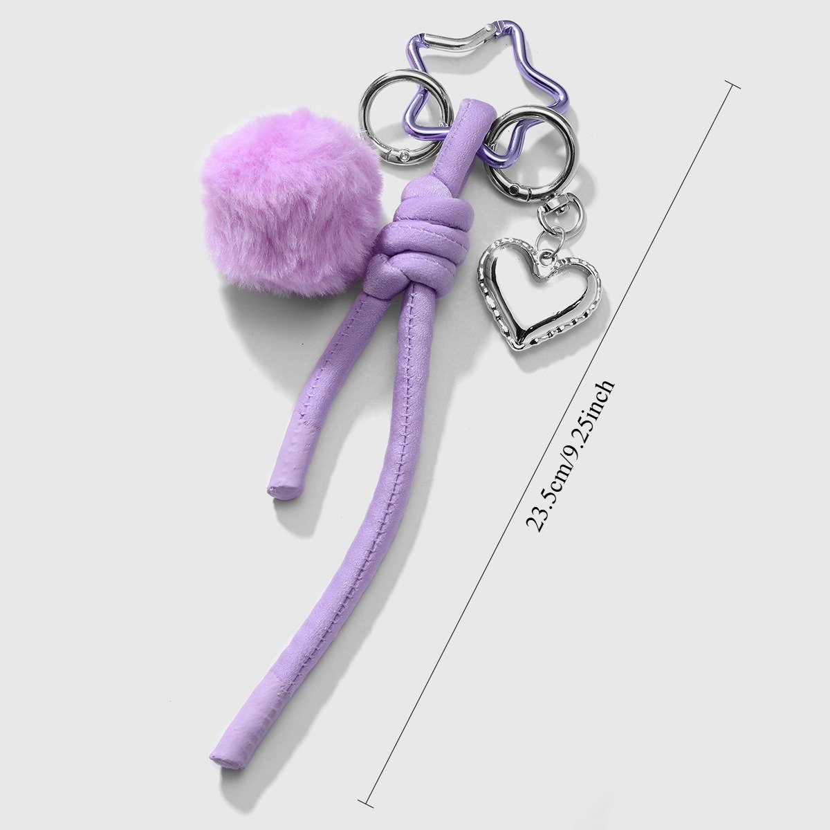 Luxury Purple Pom-Pom Keychain – CCB Heart Charm with Faux Pearl Beads & Bow, Elegant DIY Accessory