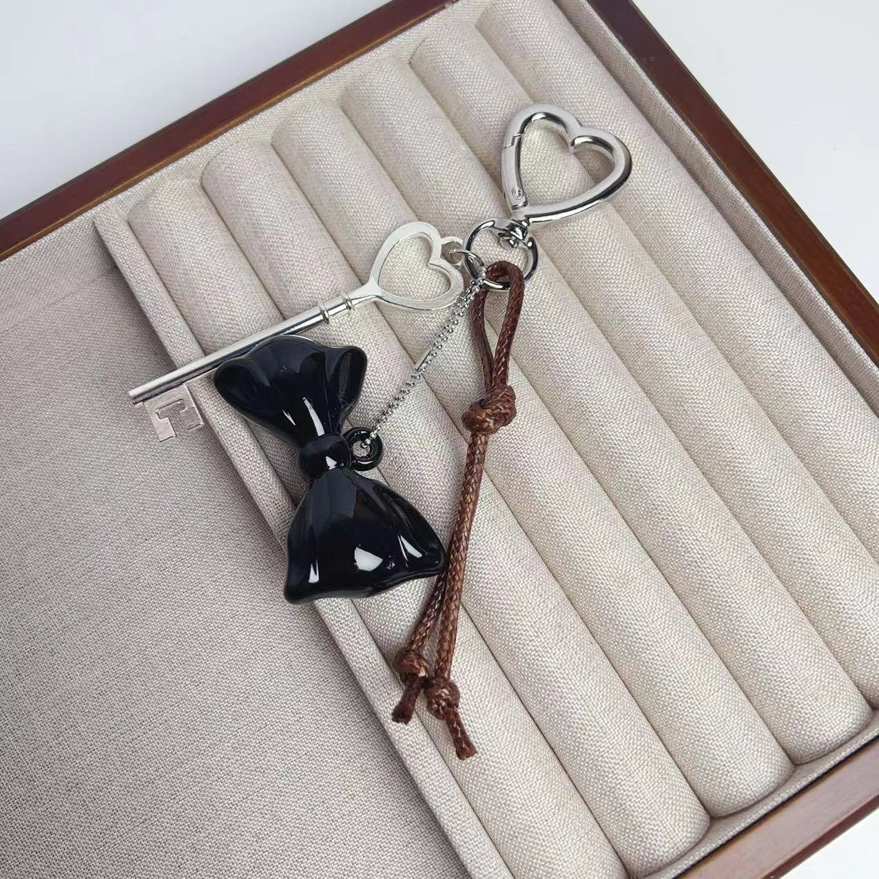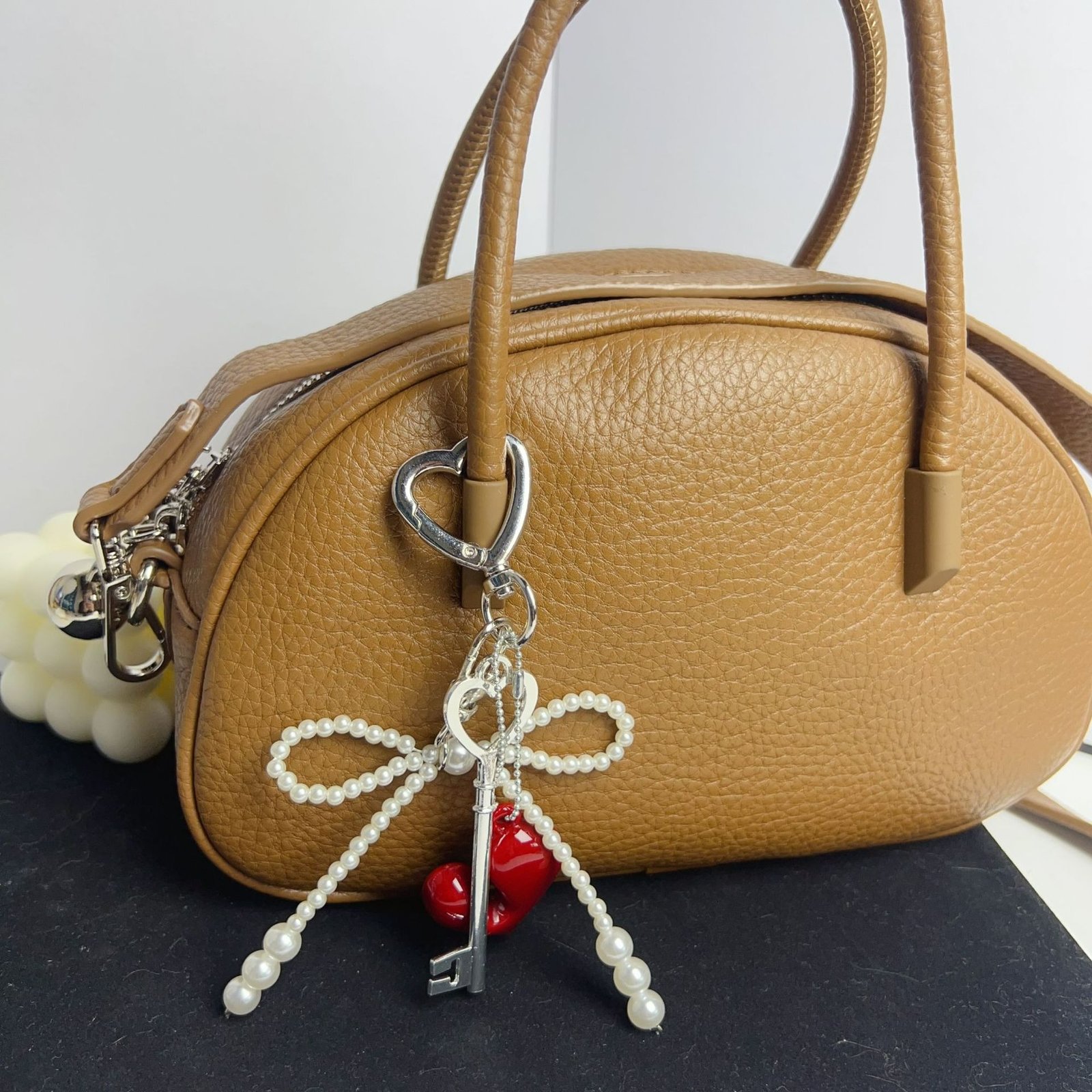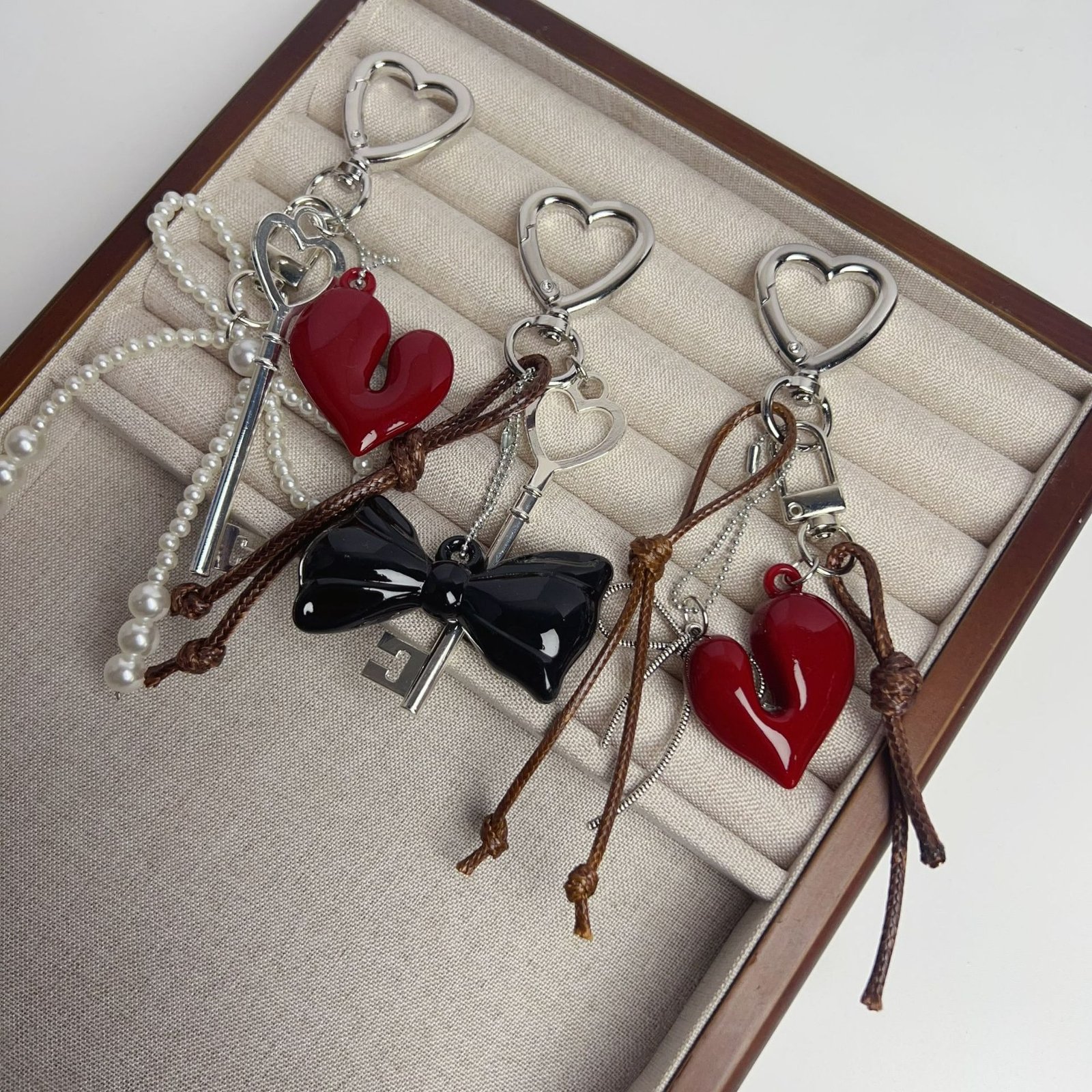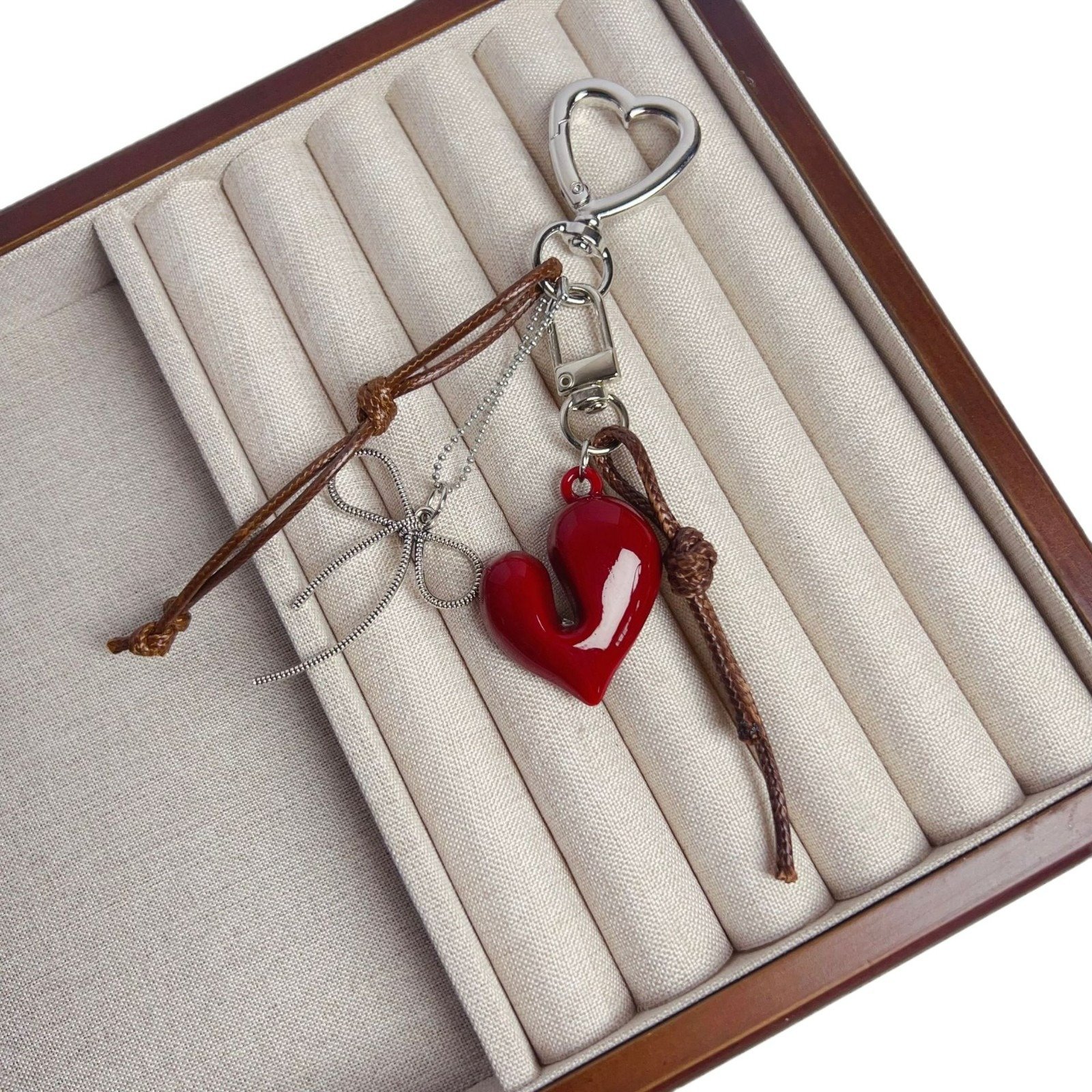 Red Heart Bag Charm – Fashion Simple Keychain Accessory, Handwoven Bow Pendant, Stylish Phone Strap